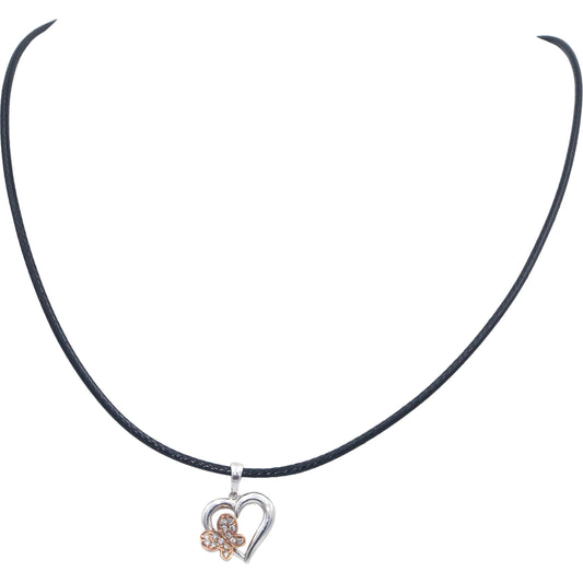 10k White & Yellow Gold Round Cut Diamond Heart Butterfly Pendant Necklace .15CT
