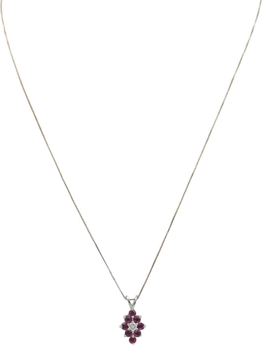 14k White Gold Jewelry 0.90CT Diamond and Ruby Pendant Necklace