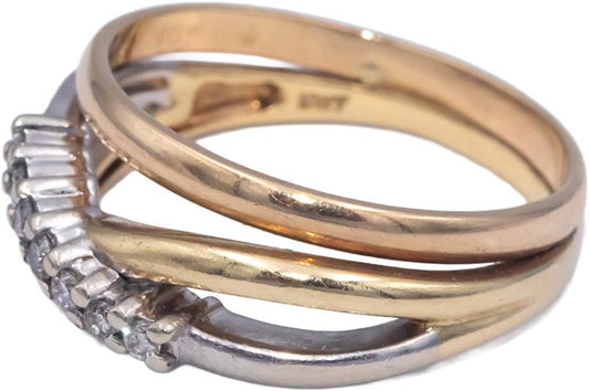 10k Yellow Gold 0.15CT Round Cut Diamond Crossover Ring Size 8