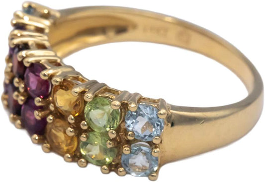 14k Yellow Gold 2.0CT Round Cut Assorted Rainbow Gemstone Band Ring Size 7