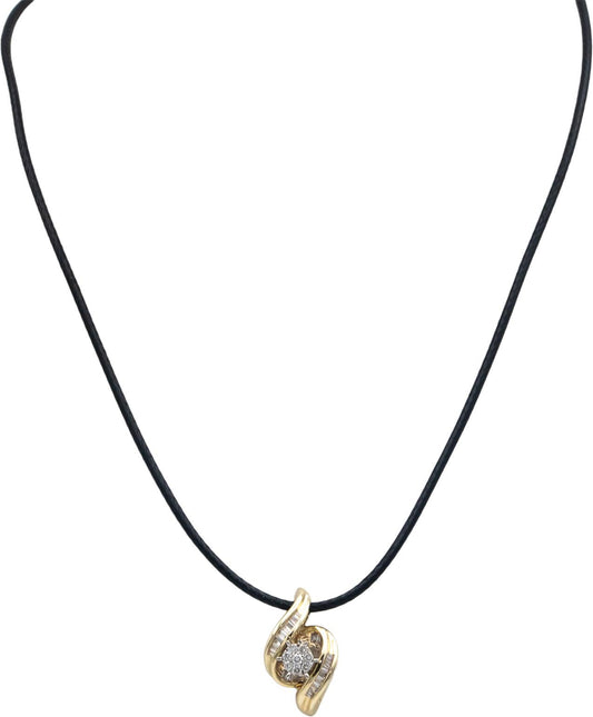 10k Yellow Gold Round and Baguette Cut Diamond Pendant Necklace 0.25CT