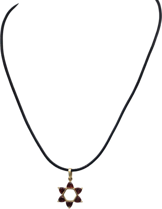 14k Yellow Gold Trillion Cut Garnet Star of David Pendant Necklace 0.75CT
