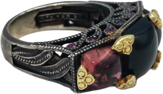 STAMBOLIAN 18k Gold Sterling Silver 6.71CT Tourmaline Sapphire Ring Size 6.75