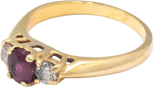 14k Yellow Gold Diamond and Ruby Three Stone Ring 0.80CT Size 7.5