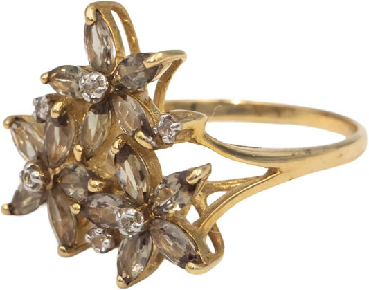 White Topaz & Peridot 9k Yellow Gold Flower Cocktail Ring 1.05CT Size 7