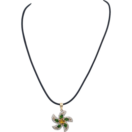 14k Yellow Gold Peridot Citrine Floral Pendant Necklace w/ Diamond Accents .08CT