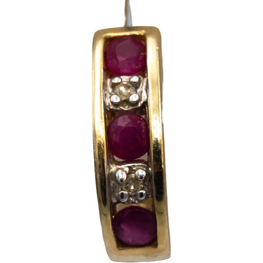 Diamond & Ruby 10k Yellow Gold Curved Stud Earrings 0.34CT