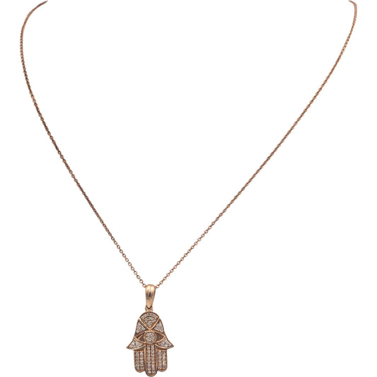 14k Rose Gold Jewelry 0.26CT VS Round Cut Diamond Hamsa Hand Pendant Necklace