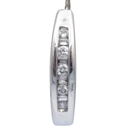 14k White Gold Jewelry 0.25CT Round Cut Channel Set Diamond Hoop Huggie Earrings