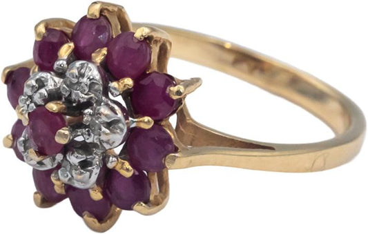 14k Yellow Gold 0.52CT Diamond and Ruby Cluster Cocktail Ring Size 5