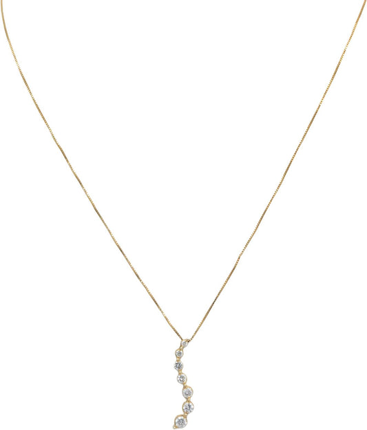 Diamond Round Cut 14k Yellow Gold Journey Pendant Necklace 0.50CT