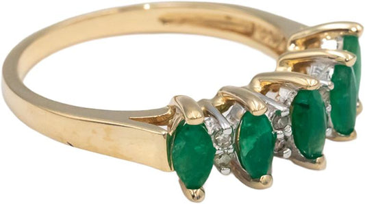 Round Diamond & Marquise Emerald 14k Yellow Gold Band Ring 0.60CT Size 7