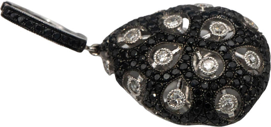 14k White Gold Round White & Black Diamond Cluster Pendant Necklace 0.75CTW