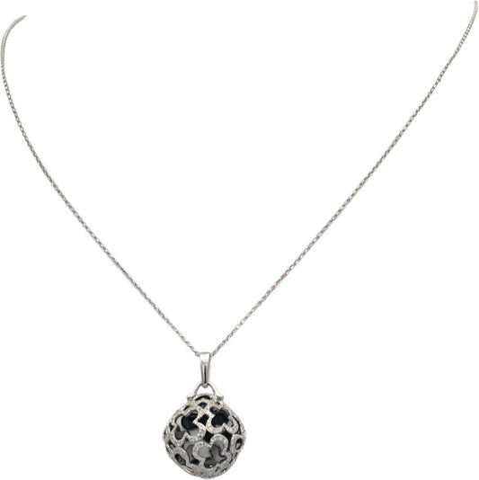 14k White Gold Round Diamond Openwork Pendant Necklace 0.25CT