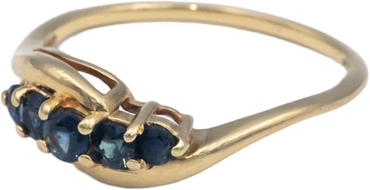 14k Yellow Gold Round Blue Sapphire Five Stone Band Ring 0.35CT Size 7