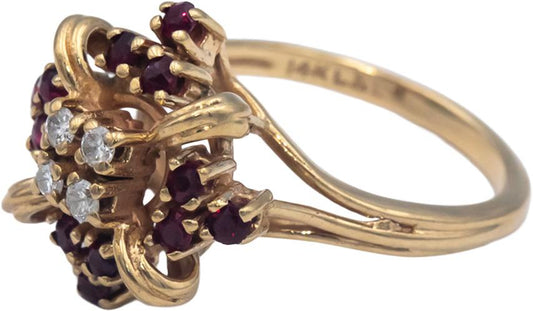 14k Yellow Gold Diamond and Ruby Cluster Cocktail Ring 0.52CT Size 5
