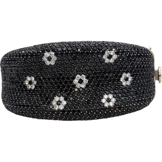 Designer 18k White Gold VS White & Black Diamond Cluster Bangle Bracelet 26.30CT