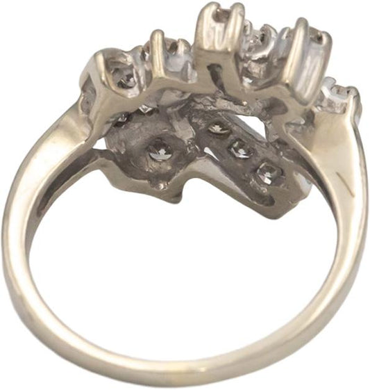 Antique Vintage 14k White Gold VS Diamond Ribbon Cocktail Ring 0.40CT Size 4.5