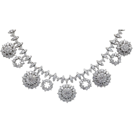 Diamond 18k White Gold VS Round Cut Flower Formal Dangle Necklace 13.0CT
