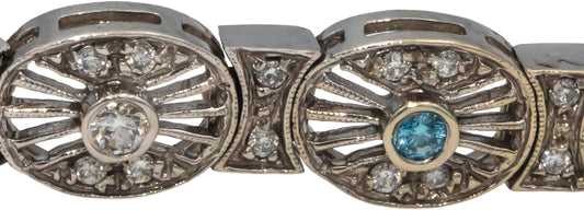 14k White Gold Round White and Blue Diamond Fancy Link Bracelet 1.50CT
