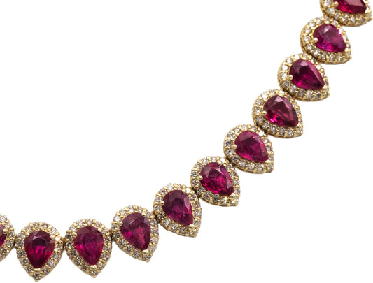 LE VIAN 14k Yellow Gold Jewelry Diamond & Pink Sapphire Formal Necklace 27.0CT