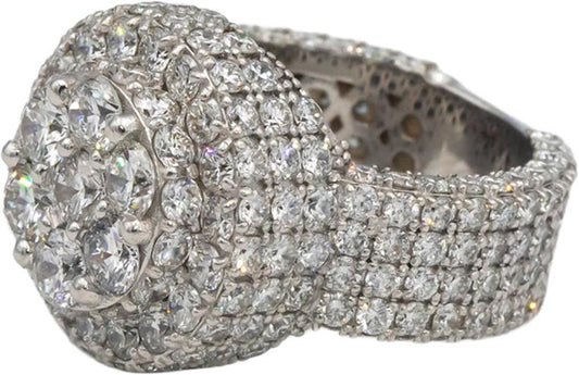 14k White Gold 8.0CT Round Lab Grown Diamond Pave Cluster Ring 8.0CT Size 8.5