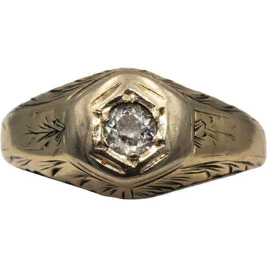 Antique Vintage 10k White Gold Diamond Solitaire Filigree Ring 0.20CT Size 3.75