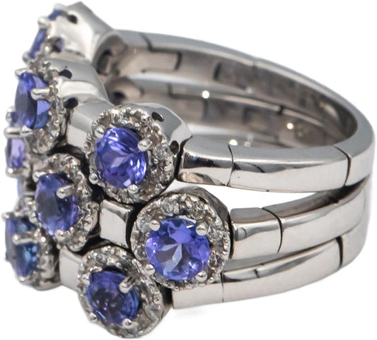 SONIA B. 14k White Gold Round Tanzanite & Diamond Three Band Ring 2.85CT Size 7