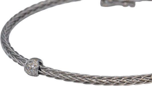 ROBERTO COIN 18k White Gold Round VS Diamond Station Woven Bangle Bracelet .10CT