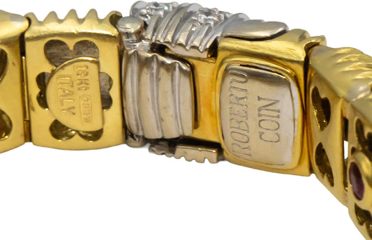 ROBERTO COIN 18k White & Yellow Gold VS Round Diamond Fancy Link Bracelet 1.0CT