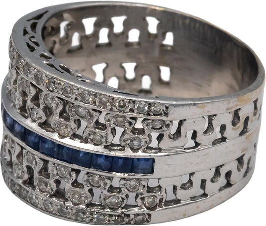 18k White Gold Diamond and Sapphire Wide Band Ring 1.0CT Size 8