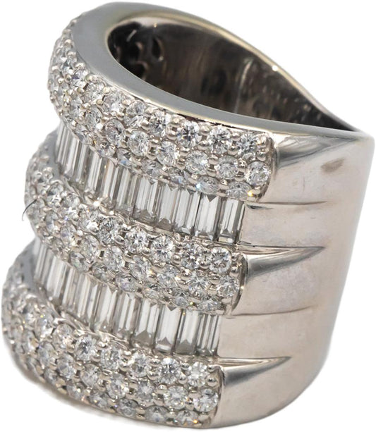 Diamond 18k White Gold Round Baguette Cluster 5 Row Wide Band Ring 5.0CT Size 7