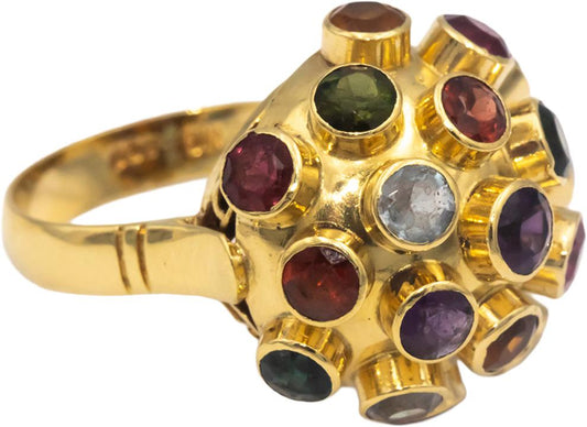 Assorted Rainbow Gemstone 18k Yellow Gold Bezel Set Sputnik Dome Ring Size 6.5