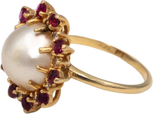 14k Yellow Gold Diamond Ruby & 12mm Mabe Pearl Cocktail Ring 0.40CT Size 7.5