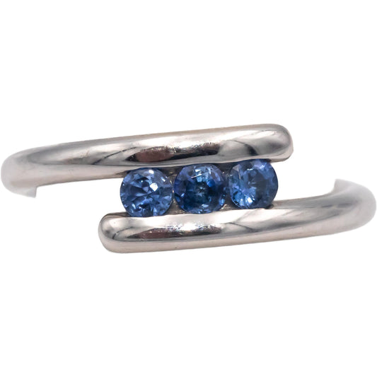 Blue Sapphire 18k White Gold Round Cut Crossover Band Ring 0.30CT Size 7.25