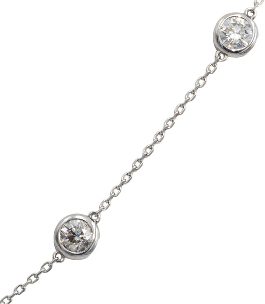 14k White Gold VS Round Bezel Set Diamond By The Yard Necklace Chain 1.33CT