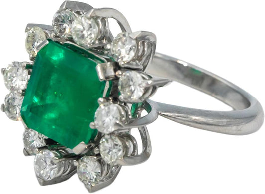 GIA Certified 14k White Gold Colombian Emerald & VS Diamond Cocktail Ring 5.30CT