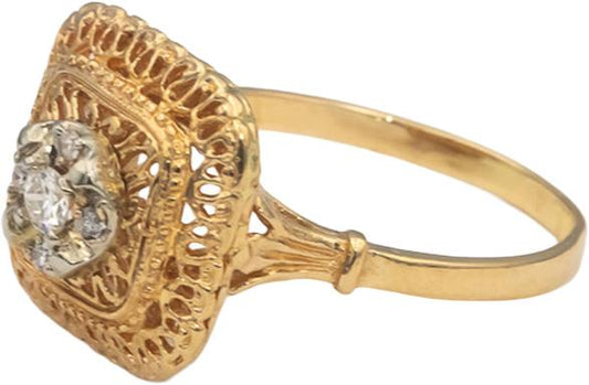 14k Yellow Gold VS Round Diamond Art Deco Filigree Ring 0.15CT Size 9.25