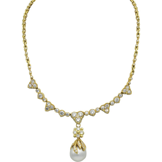 STAMBOLIAN VS Round Diamond & 14.5mm South Sea Pearl Formal Necklace 7.29CTW
