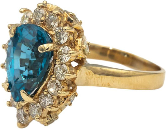 14k Yellow Gold Pear Cut Blue Topaz Round Diamond Cocktail Ring 6.50CT Size 8