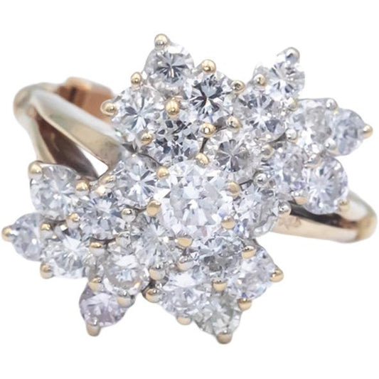 14k Yellow Gold 3.0CT Diamond Cluster Ring w/ Adjustable Shank Size 7