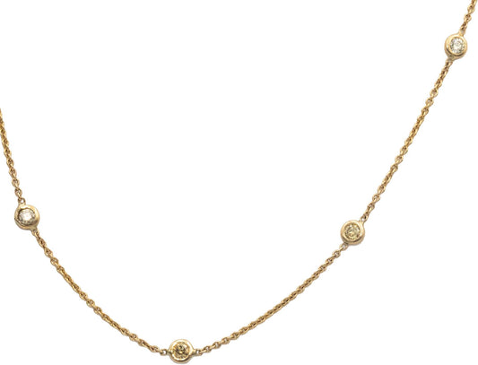 14k Yellow Gold 0.77CT Round Cut Diamond By The Yard Chain Necklace