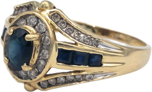 14k Yellow Gold 1.60CT Diamond and Sapphire Cocktail Ring Size 10