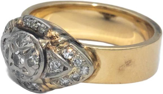 ART CARVED Vintage Antique 14k Yellow & White Gold 0.16CT Diamond Ring Size 4.5