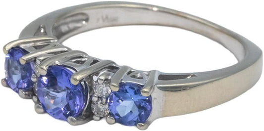 LE VIAN Designer 14k White Gold 0.85CT Diamond and Tanzanite Ring Size 6.75