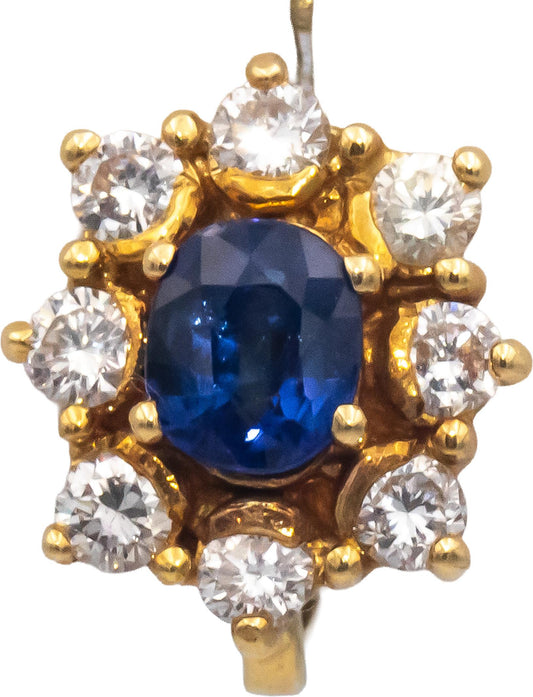 18k Yellow Gold Jewelry 2.25CT Round Diamond and Oval Blue Sapphire Earrings