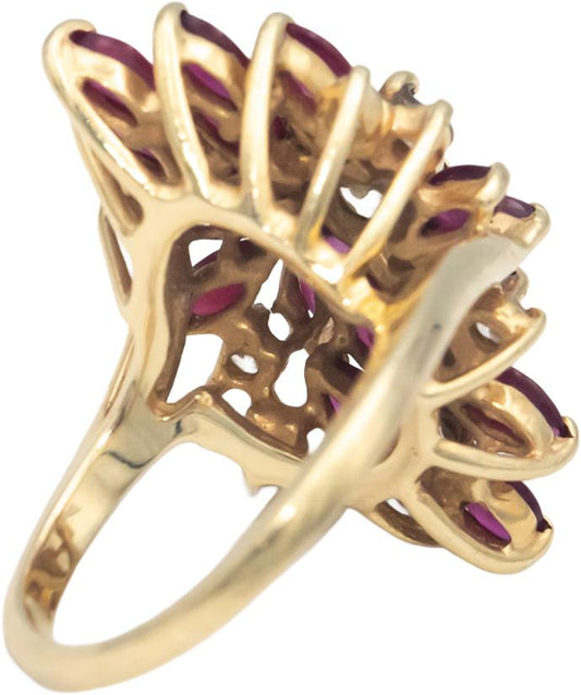 14k Yellow Gold 1.50CT Round Diamond & Marquise Ruby Cluster Ring Size 5.25