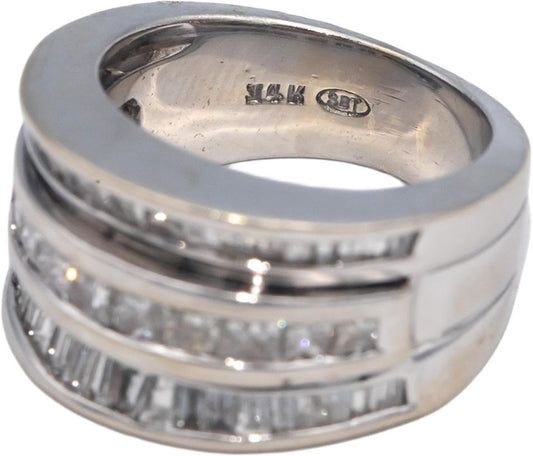 14k White Gold 1.50CT Round & Baguette Cut Diamond Band Ring Size 5