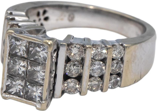 14k White Gold 2.0CT Princess and Round Cut Diamond Ring Size 7