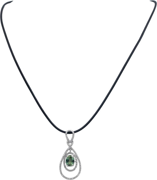 18k White Gold Jewelry VS 1.84CT Diamond and Green Sapphire Pendant Necklace